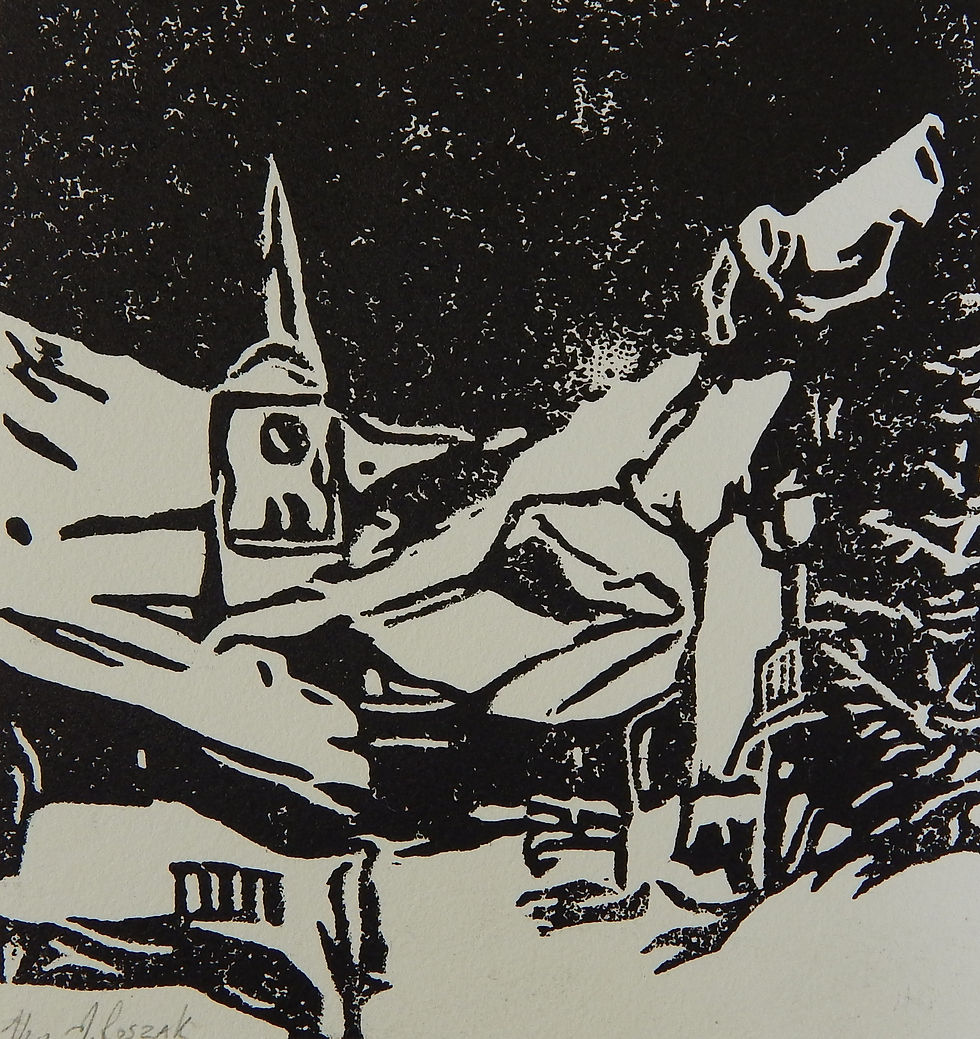 Gravure linoléum, 15/15 cm, clocher